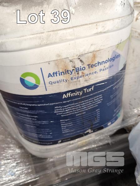 9 X AFFINITY TURF 20 LITRE AND QUANTITY OF AFFINITY TURF LABELLED 1.25 LITRE SPRAY BOTTLES AND RUSSELLS (1 X PALLET).