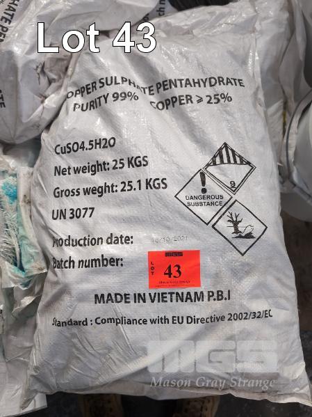 15 X BAGS COPPER SULPHATE PENTAHYDRATE 25 KG.