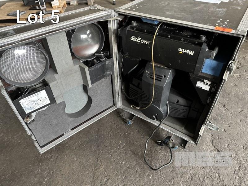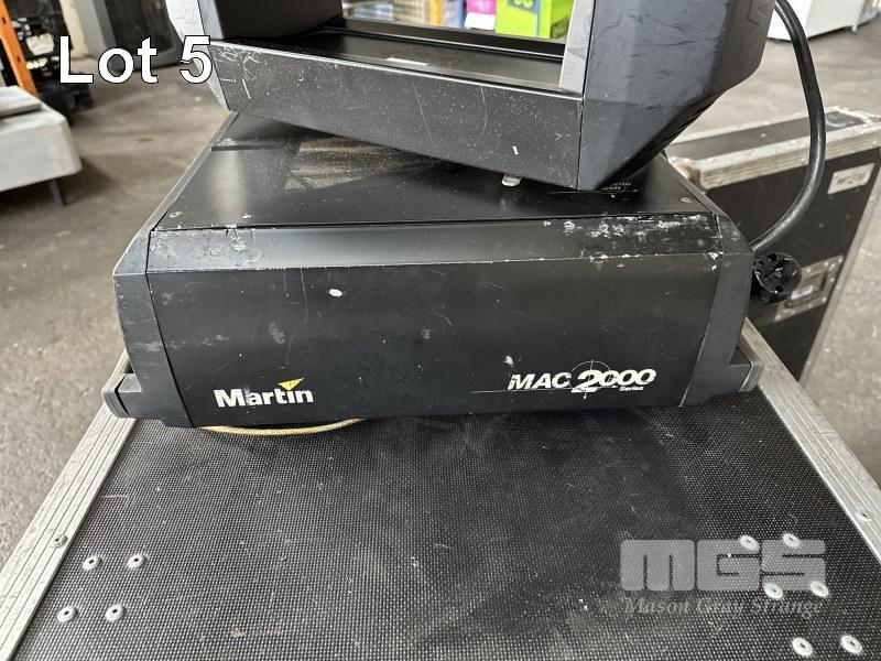 2 x MARTIN MAC 2000 WASH MOVING HEAD LIGHTS, IN MOBILE ROAD CASE, 118 x 59 x 70cm