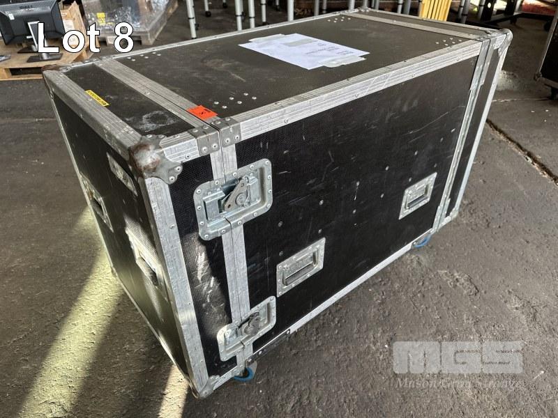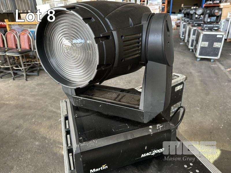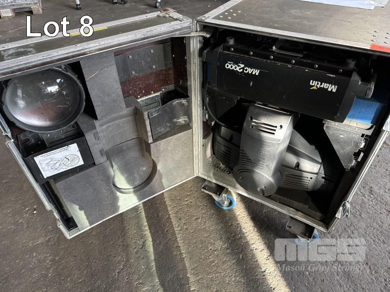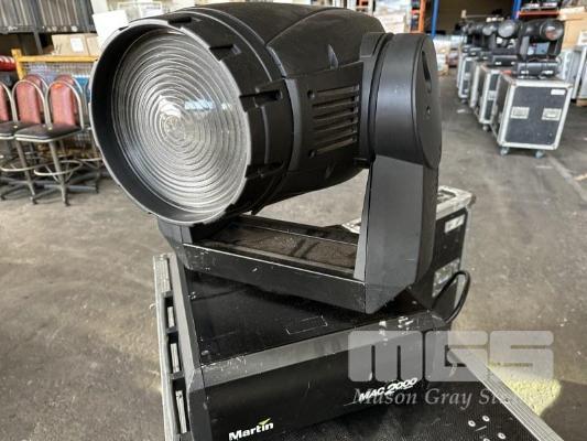 2 x MARTIN MAC 2000 WASH MOVING HEAD LIGHTS, IN MOBILE ROAD CASE, 118 x 59 x 70cm