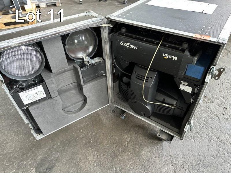 2 x MARTIN MAC 2000 WASH MOVING HEAD LIGHTS, IN MOBILE ROAD CASE, 118 x 59 x 70cm