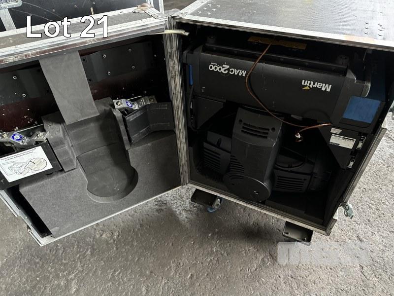 2 x MARTIN MAC 2000 PROFILE II MOVING HEAD LIGHTS, IN MOBILE ROAD CASE, 118 x 59 x 70cm