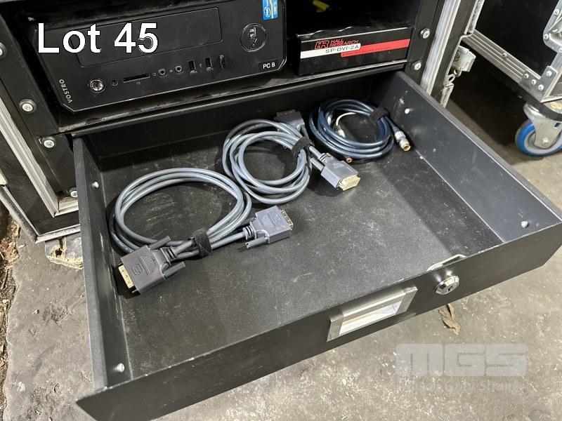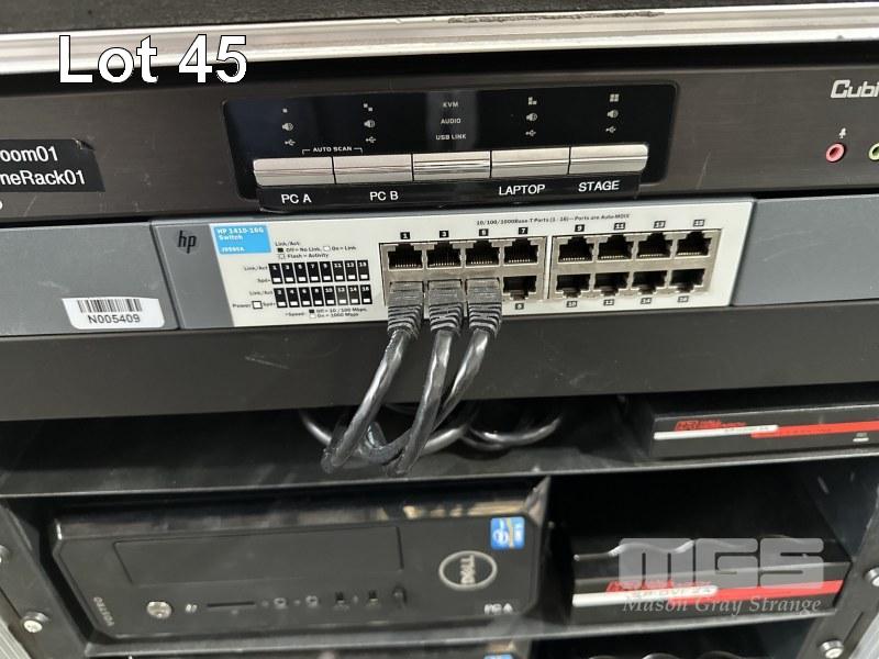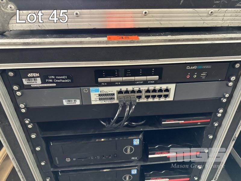 MOBILE RACKMOUNT ROAD CASE, 65 x 60 x 67cm INC. - ATEN CUBIQ CS1644 KVM SWITCH - HP 1410-16G 16-PORT SWITCH, J9560A - HALL REASEARCH SP-HDMI-2A HDMI SPLITTER - EPIPHAN LECTURE RECORDER - AUSTRALIAN MONITOR AUDIO HUM ELIMINATOR - 2 x HALL RESEARCH SP-DVI-2A 2 PORT DVI SPLITTERS - 2 x DELL VOSTRO 270s, CORE i5 COMPUTERS