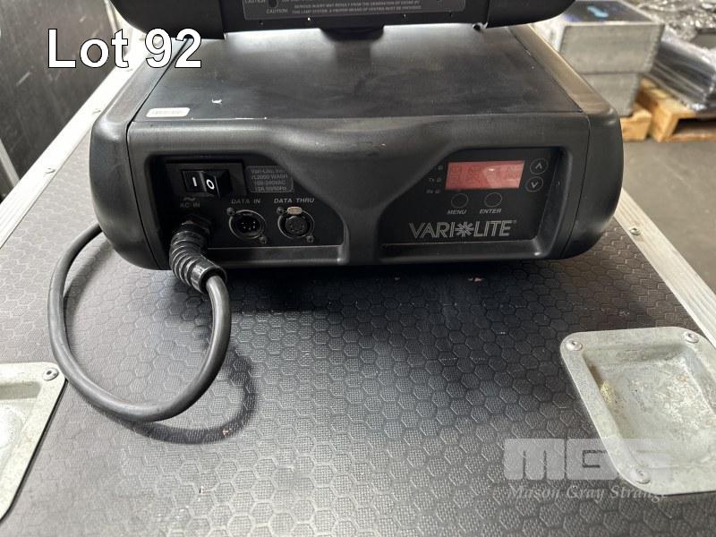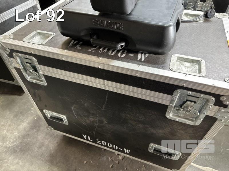 2 x VARI-LITE VL2000 MOVING HEAD WASH LIGHTS, WITH MOBILE ROAD CASE, 96 x 58 x 74cm