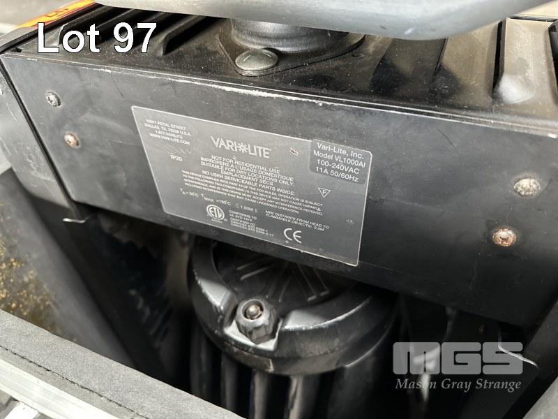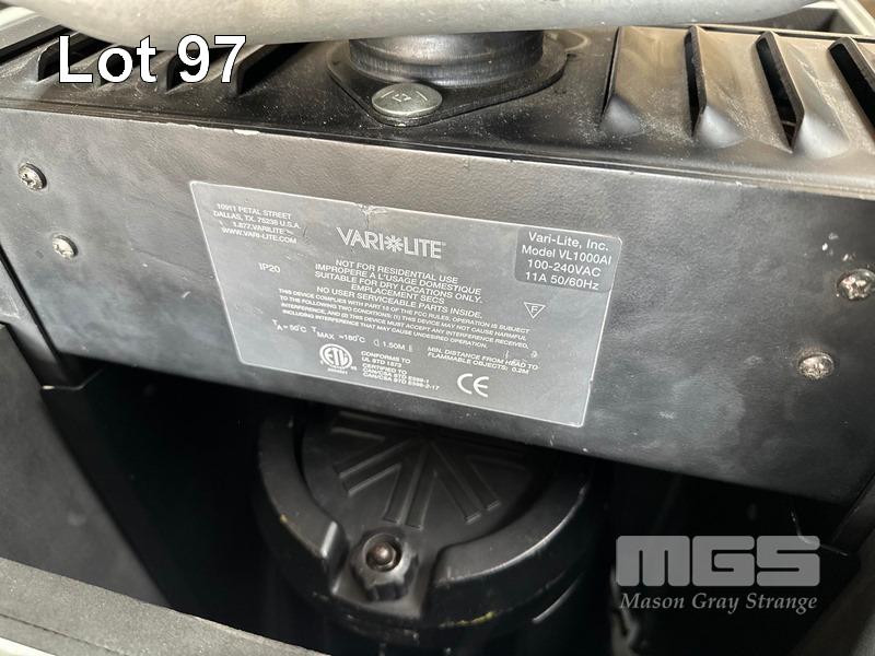 3 x VARI-LITE VL1000AI MOVING HEAD STAGE LIGHTS, 2 x POWER SUPPLIES, VL1000APS WITH MOBILE ROAD CASE, 96 x 58 x 74cm