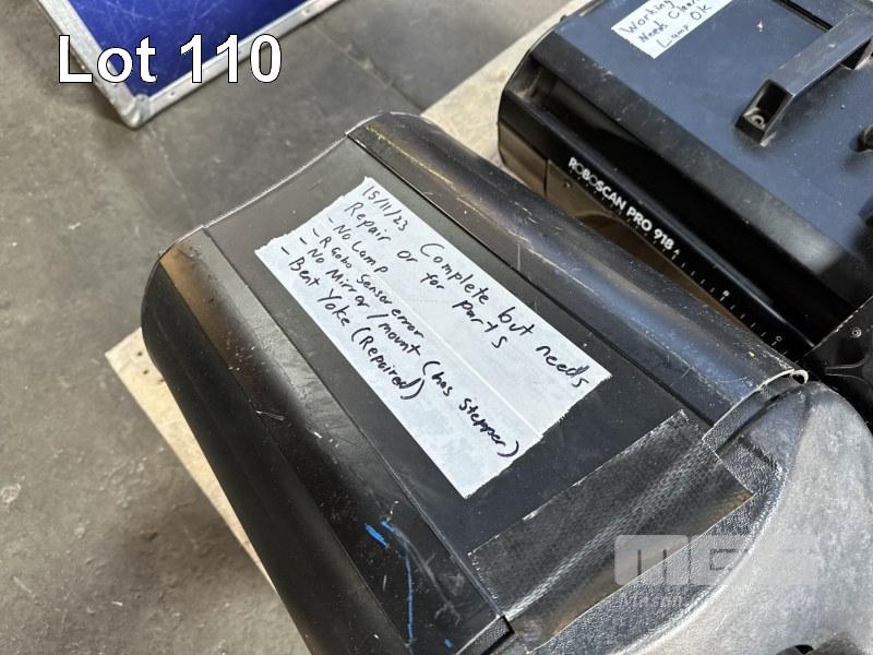 2 x MARTIN ROBOSCAN PRO 918 MOVING MIRROR LIGHTS WITH SPARES (1 x FOR PARTS)