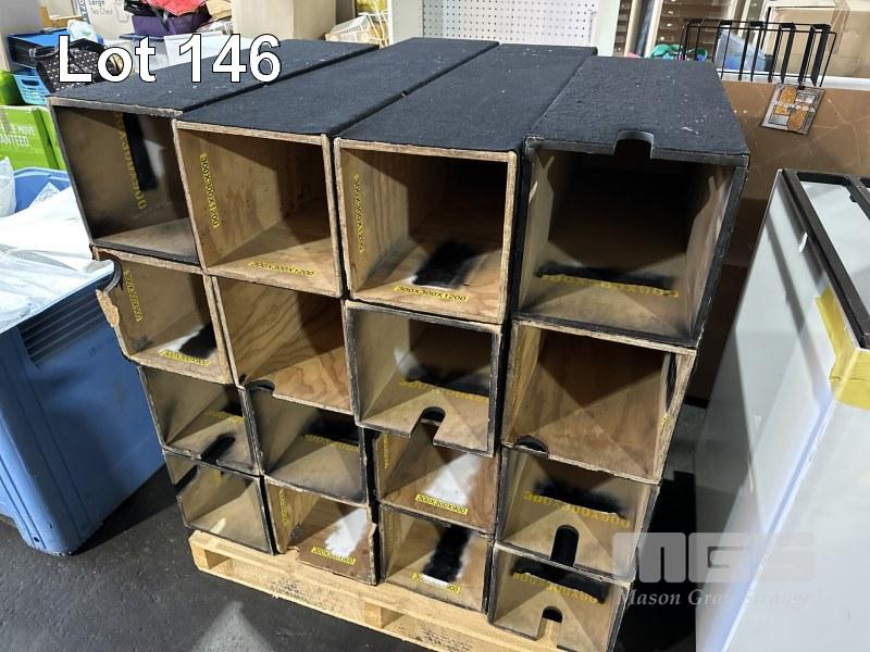 3 x CARPETED PLINTHS, 60 x 60 x 120cm 2 x CARPETED PLINTHS, 30 x 30 x 120cm 14 x CARPETED PLINTHS, 30 X 30 x 90cm