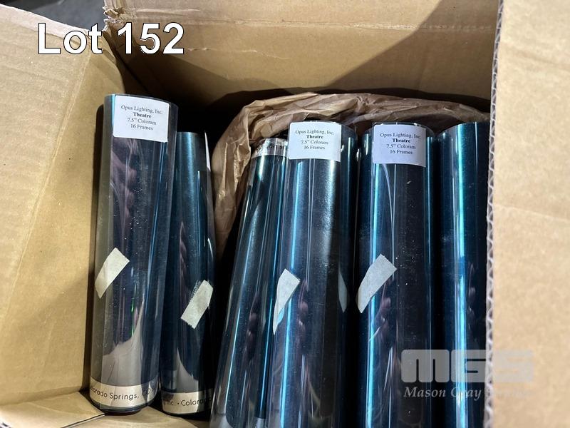 24 x THE COLORAM II SCROLLIGN LIGHTS, 2 x POWER SUPPLIES, TUB OF COLOUR SCROLLER SPARES