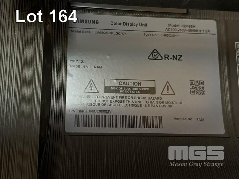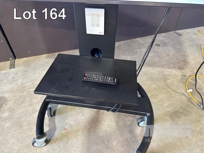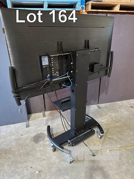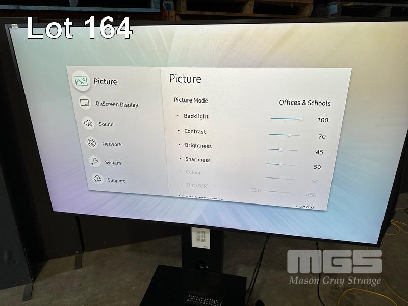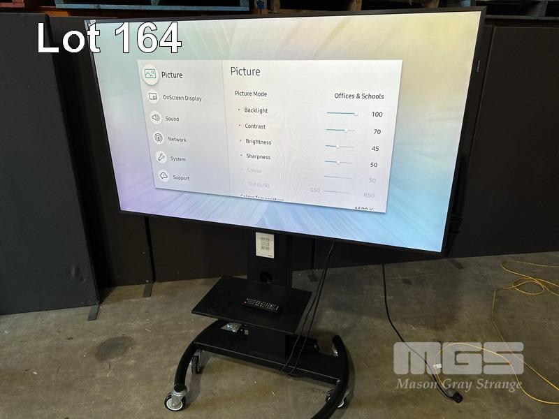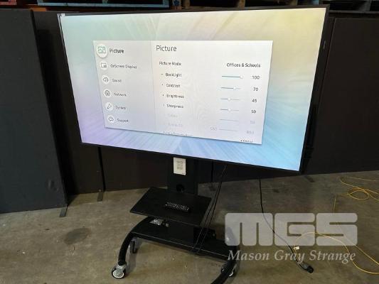SAMSUNG QM65H SERIES 65" UHD COMMERCIAL LED LCD DISPLAY, LH65QMHPLGC/XY ON AMM MOBILE STAND WITH NETWORK SWITCH & POWER BOARD S/N:04E2HNKJC00003V
