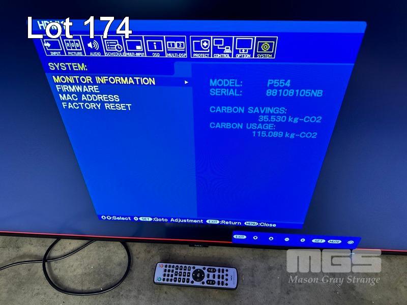 MONITOR, NEC MULTISYNC P554 55" COMMERCIAL LCD DISPLAY, WITH REMOTE (NO STAND) S/N:88108105NB