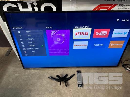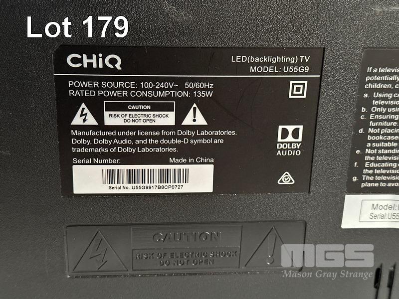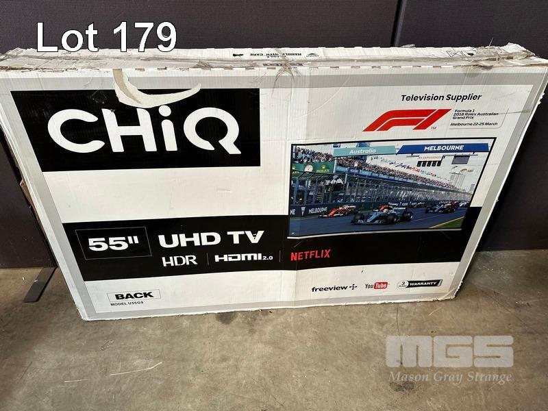 CHIQ 55" UHD LCD TV, U55G9 WITH REMOTE (NOTE: SMALL SCRATCH ON SCREEN)