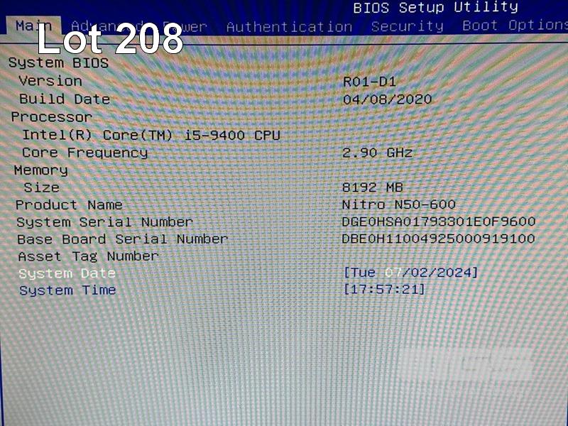 GAMING PC, ACER NITRO N50-600, CORE i5 9400 (9TH GEN) @ 2.9GHz, 8GB DDR4 RAM, 256GB NVMe M.2 SSD, DVD-RW, 4GB NVIDIA GEFORCE GTX1650 VIDEO, WINDOWS 10 HOME INSTALLED (NO KEYBOARD, NO MOUSE) S/N:93300769596