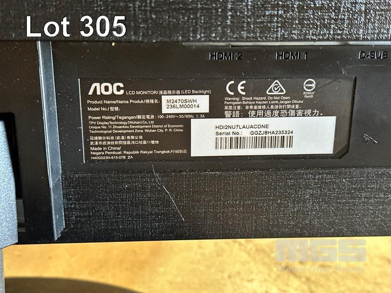MONITOR, AOC M2470SWH 23.6" LED-BL LCD WIDESCREEN, HDMI, VGA (WITH CABLES) S/N:GGZJ8HA235324