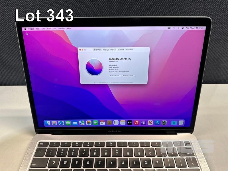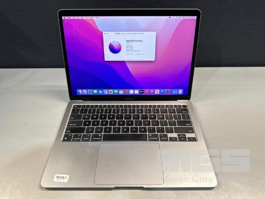 LAPTOP, APPLE MACBOOK AIR (A2337), MGN63X/A, APPLE M1 8 CPU/7 GPU, 8GB RAM, 256GB SSD, 13.3" RETINA DISPLAY (2560x1600), Wi-Fi, BLUETOOTH, MAC OS 12 INSTALLED (NO USB-C POWER SUPPLY) (NOTE: MINOR MARKS ON SCREEN) S/N:FVFG5CE1Q6L4