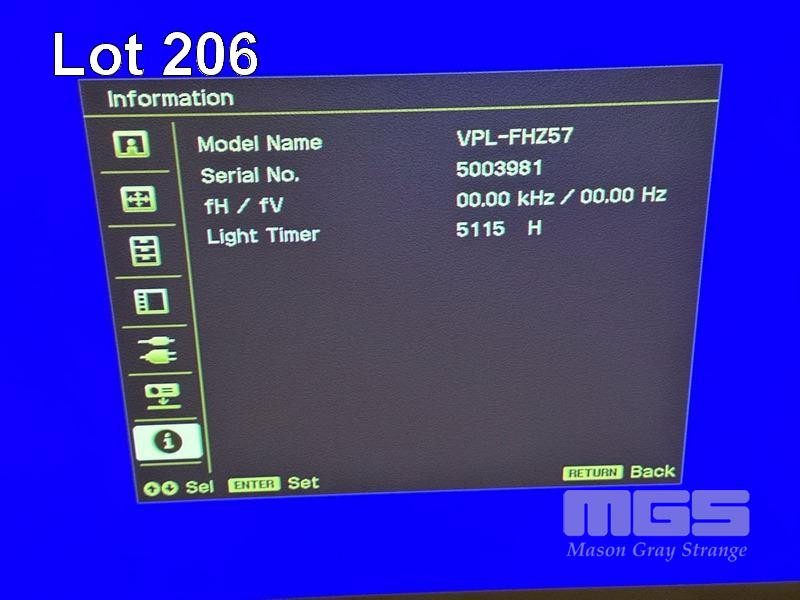 LASER PROJECTOR, SONY VPL-FHZ57 WUXGA 3LCD, 4,100 LUMENS, 5,114 HOURS SHOWING WITH REMOTE S/N:5003981