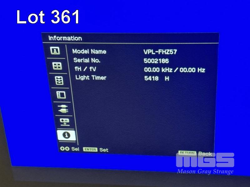LASER PROJECTOR, SONY VPL-FHZ57 WUXGA 3LCD, 4,100 LUMENS, 5,418 HOURS SHOWING WITH REMOTE S/N:5002186