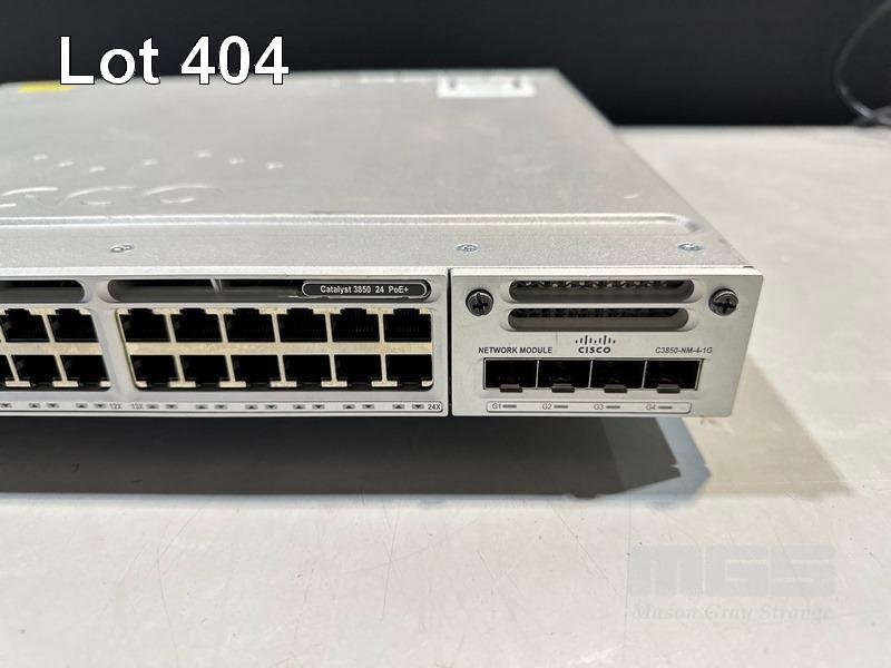 CISCO CATALYST 3850 24 PoE+ 24-PORT SWITCH, WS-C3850-24P-S V03 C3850-NM-4-1G NETWORK MODULE, 2 x PWR-C1-440WDC PSU (TERMINAL BLOCK) S/N:FOC1826U0UX