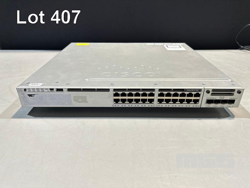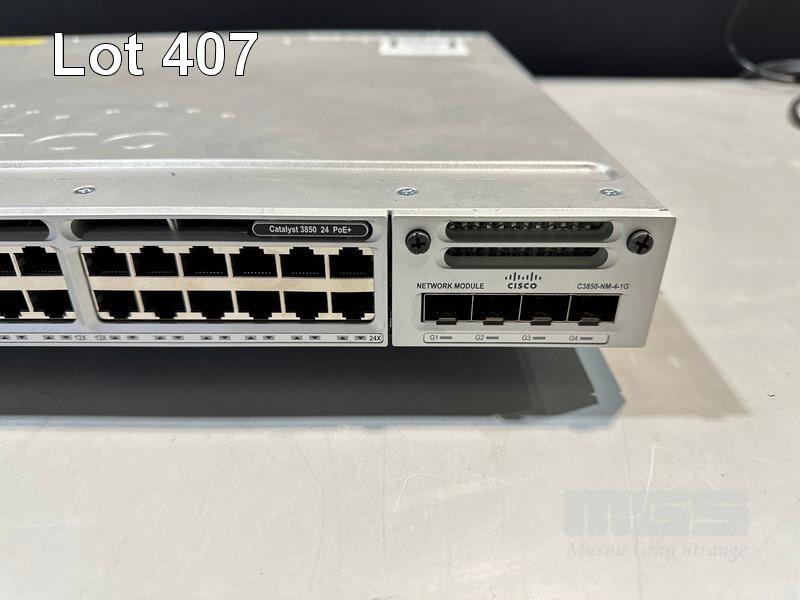 CISCO CATALYST 3850 24 PoE+ 24-PORT SWITCH, WS-C3850-24P-S V02 C3850-NM-4-1G NETWORK MODULE, 2 x PWR-C1-440WDC PSU (TERMINAL BLOCK) S/N:FOC1728V038