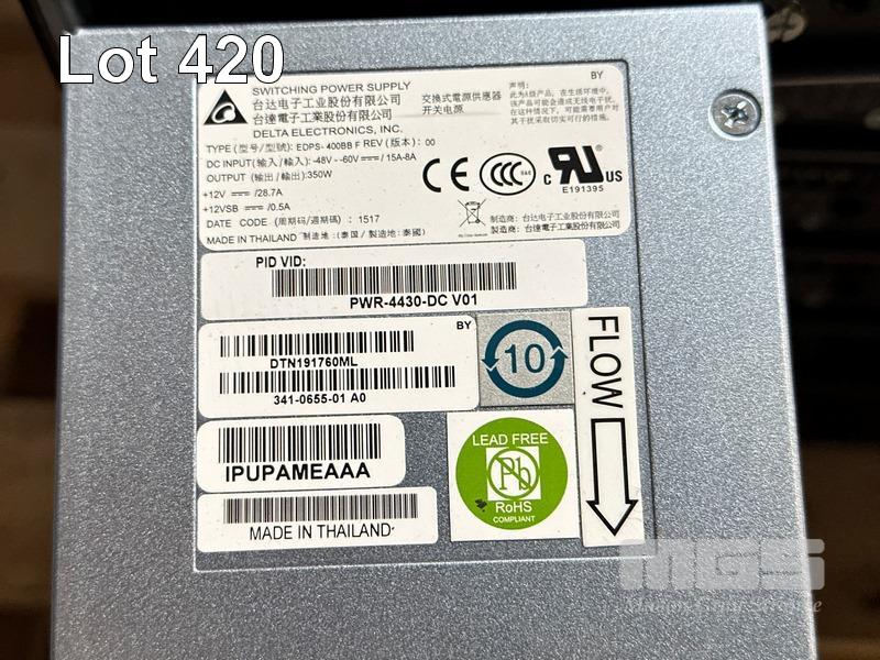 7 x CISCO 4400 SERIES INTEGRATED SERVICES ROUTERS, ISR4431/K9 V01 MOST WITH 2 x PWR-4430-DC PSU (TERMINAL BLOCK) (NOTE: MISSING FRONT PANELS) S/N:FGL19521131, FGL19521127, FGL1952112A, FGL1952112E, FGL19521130, FGL1952112N, FGL1952117Z
