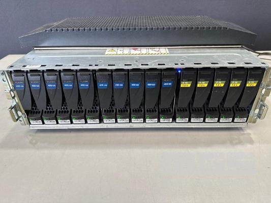 RACKMOUNT STORAGE ARRAY, DELL EMC2, MODEL KTN-STL3, 5 x 4TB SAS HDD, 10 x 400GB SAS SSD, 2 x SAS CONTROLLERS, 2 x PSU (NO CABLES)