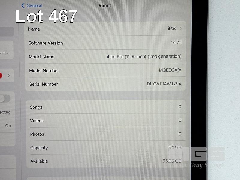 APPLE iPAD PRO 12.9 INCH, 2ND GEN, 64GB, Wi-Fi, CELLULAR, SPACE GREY, MODEL MQED2X/A, A1671 (NO CABLE, NO CHARGER) S/N:DLXWT14WJ294
