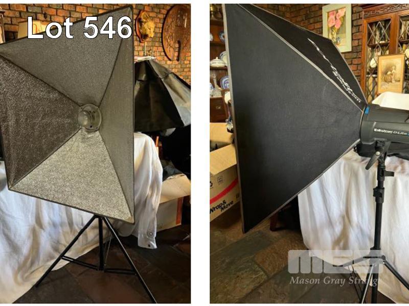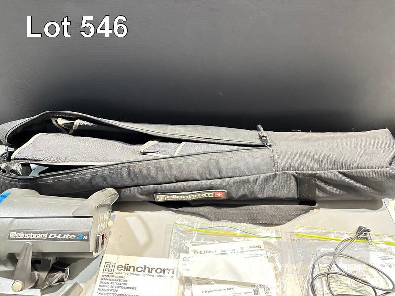 2 x ELINCHROM D-LITE 2 IT FLASH UNITS WITH TRIPODS, ELINCHROM PORTALITE SOFTBOXES, ELINCHROM TRANSMITTER PRO, HAHNEL COMBI TF REMOTE RECEIVER