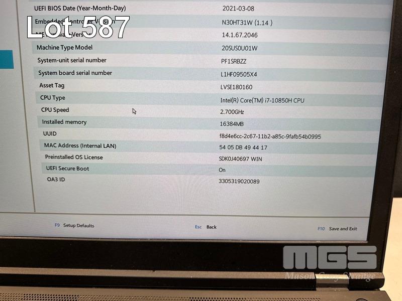 LAPTOP, LENOVO THINKPAD P15 GEN 1 MOBILE WORKSTATION, TYPE 20SU, CORE i7 10850H (10TH GEN) @ 2.7GHz, 16GB DDR4 RAM, 512GB NVMe M.2 SSD, 15.6" WIDESCREEN (1920x1080), 4GB NVIDIA QUADRO T2000 VIDEO, Wi-Fi, BLUETOOTH, WINDOWS 11 PRO INSTALLED & POWER SUPPLY (NOTE: MARKS ON SCREEN) S/N:PF1SRBZZ