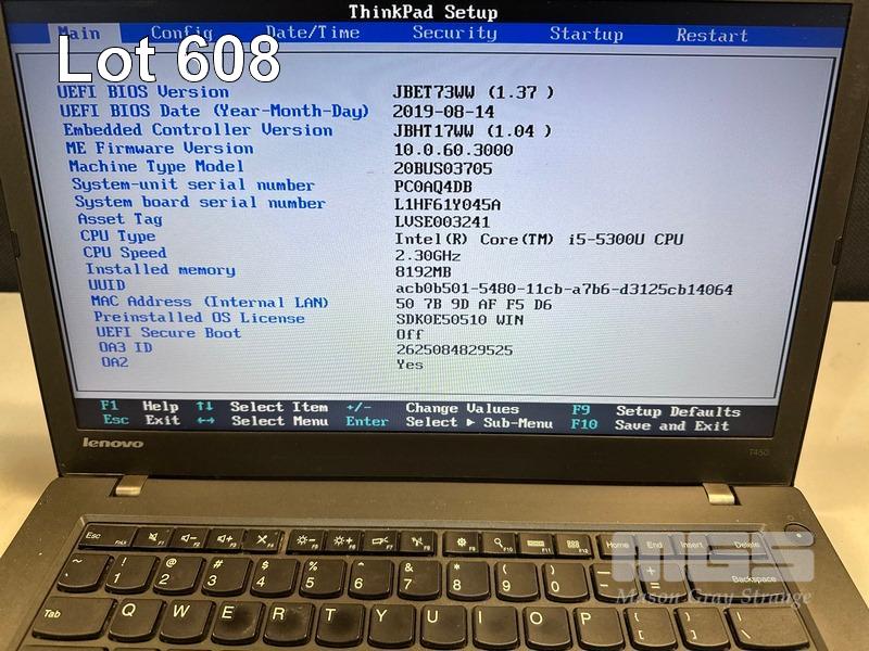 LAPTOP, LENOVO THINKPAD T450, TYPE 20BU, CORE i5 5300U (5TH GEN) @ 2.3GHz, 8GB DDR3 RAM, 275GB SSD, 14" WIDESCREEN (1366x768), INTEL HD VIDEO, Wi-Fi, BLUETOOTH, WINDOWS 10 PRO INSTALLED, POWER SUPPLY & CARRY BAG (NOTE: BRIGHT SPOT & MINOR MARKS ON SCREEN) S/N:PC0AQ4DB
