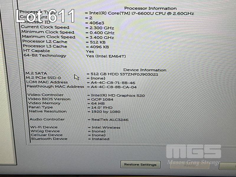 LAPTOP, DELL LATITUDE 7480, CORE i7 6600U (6TH GEN) @ 2.6GHz, 16GB DDR4 RAM, 512GB M.2 SSD, 14" WIDESCREEN (1920x1080), INTEL HD GRAPHICS 520, Wi-Fi, BLUETOOTH, WINDOWS 10 HOME INSTALLED & POWER SUPPLY S/N:4F1CQH2