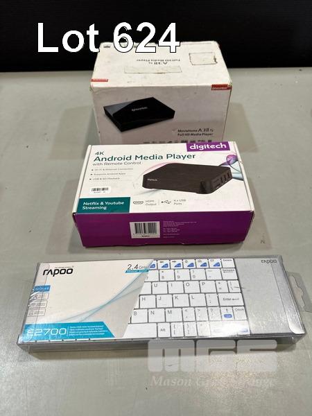 DIGITECH 4K ANDROID MEDIA PLAYER, NOONTEC A3IIS FULL HD MEDIA PLAYER, RAPOO E2700 WIRELESS TOUCHPAD KEYBOARD