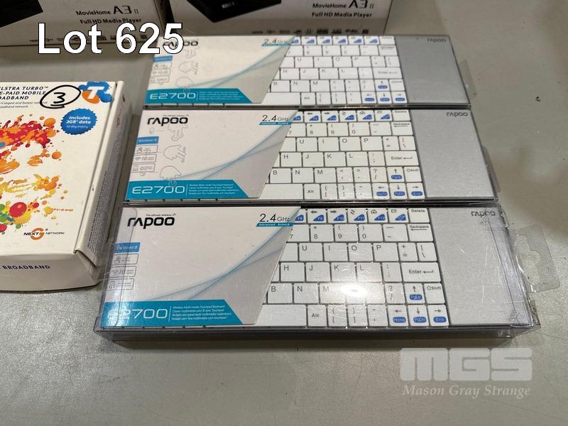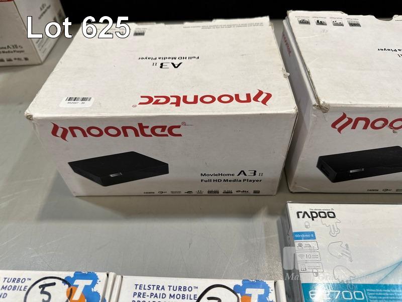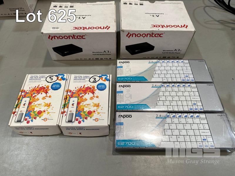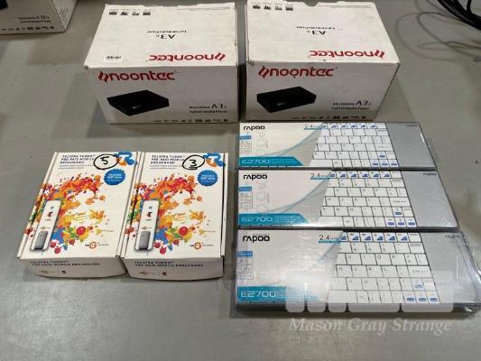 2 x NOONTEC A3II FULL HD MEDIA PLAYERS, 3 x RAPOO E2700 WIRELESS TOUCHPAD KEYBOARDS, 2 x TELSTRA USB MODEMS