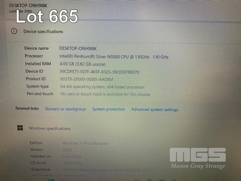 LAPTOP, DELL LATITUDE 3190, PENTIUM SILVER N5000 @ 1.1GHz, 4GB DDR4 RAM, 128GB M.2 SSD, 11.6" WIDESCREEN (1366x768), INTEL UHD GRAPHICS 605, Wi-Fi, BLUETOOTH, WINDOWS 11 PRO EDUCATION INSTALLED & POWER SUPPLY S/N:60L76S2