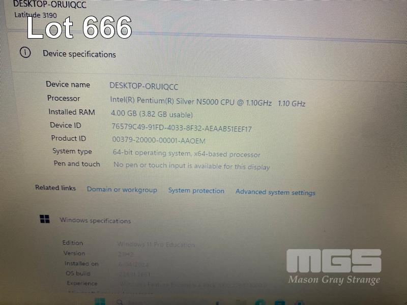 LAPTOP, DELL LATITUDE 3190, PENTIUM SILVER N5000 @ 1.1GHz, 4GB DDR4 RAM, 128GB M.2 SSD, 11.6" WIDESCREEN (1366x768), INTEL UHD GRAPHICS 605, Wi-Fi, BLUETOOTH, WINDOWS 11 PRO EDUCATION INSTALLED & POWER SUPPLY S/N:CZF76S2