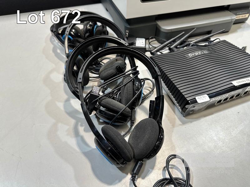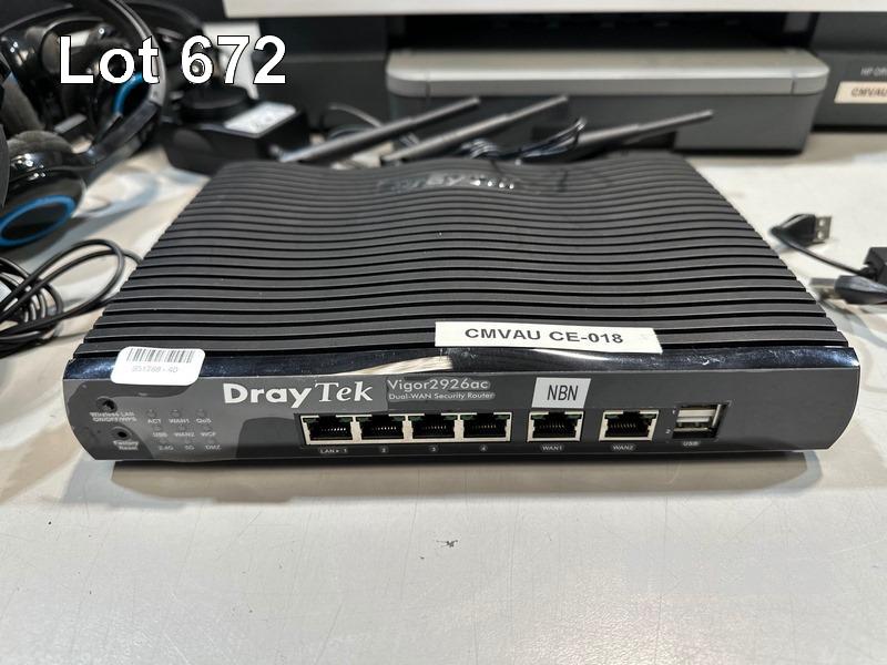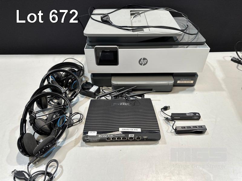 DRAYTEK VIGOR 2926ac WIRELESS ROUTER, HP OFFICEJET 8010 INKJET PRINTER, 2 x 4-PORT USB HUBS, 4 x LOGITECH USB HEADSETS