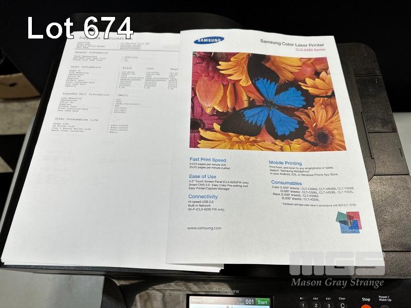 PRINTER, SAMSUNG CLX-6260FW MFC COLOUR LASER, USB, NETWORK, 6,996 COLOUR & 1,456 B&W PAGES (TEST PAGE ATTACHED) S/N:Z802BJEJ200005J