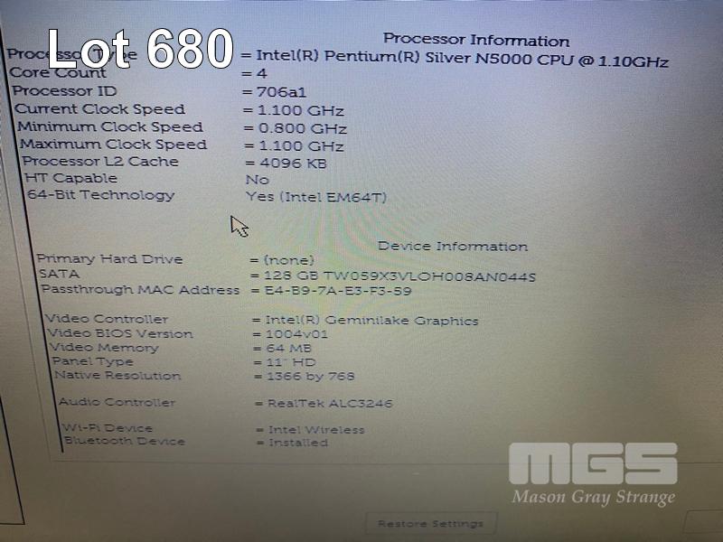 LAPTOP, DELL LATITUDE 3190, PENTIUM SILVER N5000 @ 1.1GHz, 4GB DDR4 RAM, 128GB M.2 SSD, 11.6" WIDESCREEN (1366x768), INTEL UHD GRAPHICS 605, Wi-Fi, BLUETOOTH, WINDOWS 11 PRO EDUCATION INSTALLED & POWER SUPPLY S/N:77K66S2