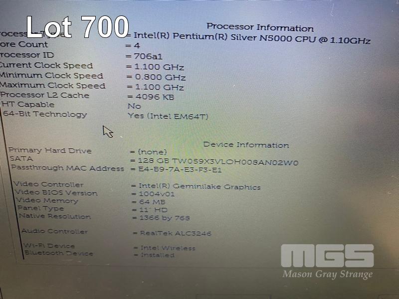LAPTOP, DELL LATITUDE 3190, PENTIUM SILVER N5000 @ 1.1GHz, 4GB DDR4 RAM, 128GB M.2 SSD, 11.6" WIDESCREEN (1366x768), INTEL UHD GRAPHICS 605, Wi-Fi, BLUETOOTH, WINDOWS 11 PRO EDUCATION INSTALLED & POWER SUPPLY S/N:3JP56S2