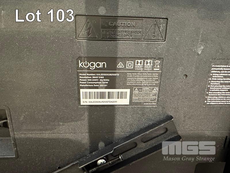 KOGAN 50" LCD TV, KALED50XU9210STD WITH REMOTE (NO STAND)