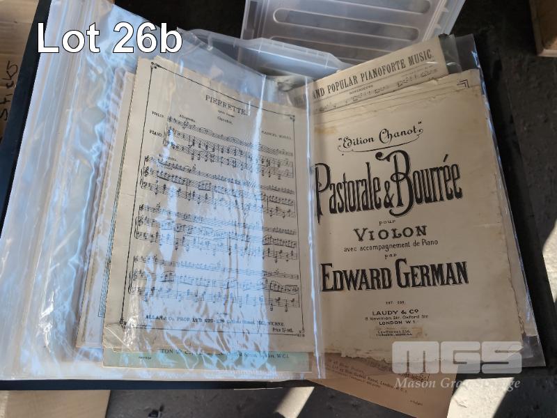 QUANTITY OF SHEET MUSIC, OLIN RECORD PLAYER AND A COLLECTION OF VINTAGE VIOLIN BOOKS ETC.