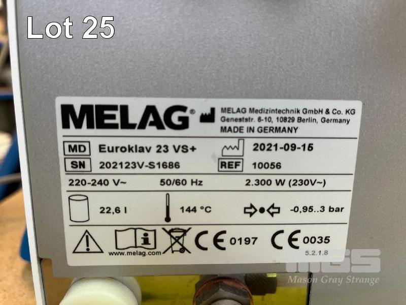 MELAG AUTOCLAVE, MOD: EUROKLAV 23 VS+, SERIAL: 202123V-S1686, DOM: 15/09/2021 240V 10 AMP PLUG WITH DOCKET PRINTER, BOOKLETS & VARIOUS SMALL ACCESSORIES