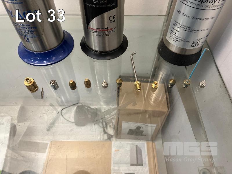 3 x LIQUID NITROGEN CRYOSURGICAL SPRAY UNITS WITH ASSORTED ATTACHMENTS BRYMILL, CRYO PRO MINI & PREMIER