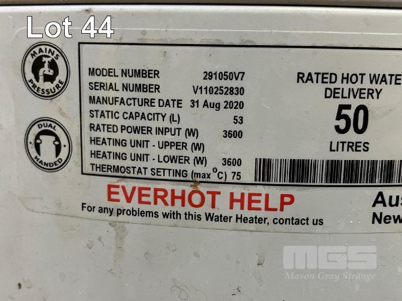 EVERHOT HOT WATER SERVICE MODEL: 291050V7 DOM: 2020 50 LITRE