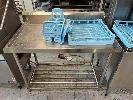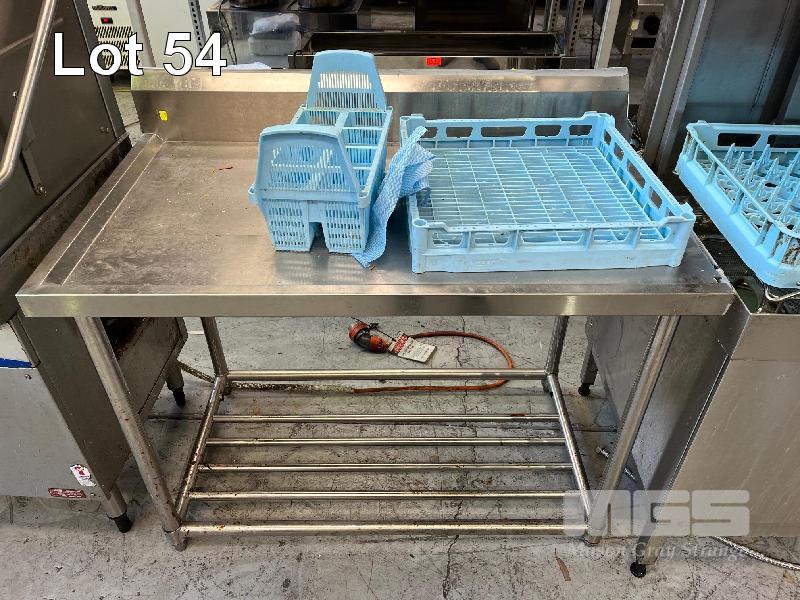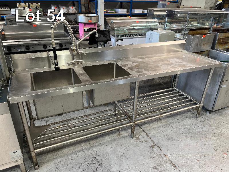 WITH INFEED (1200 x 700mm) & OUTFEED (2400 x 700mm) BENCHES TWIN BOWL SINK, RINSE TAP & SPLASHBACK