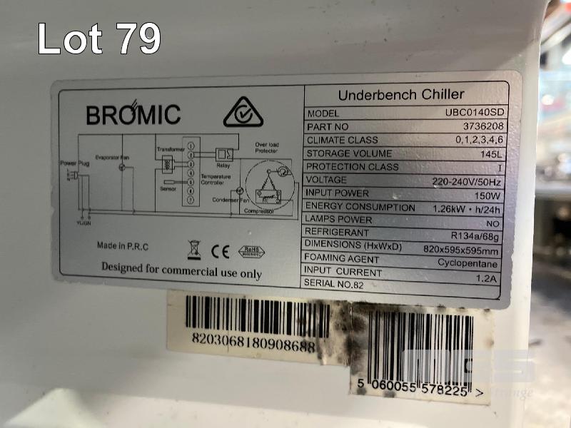 BROMIC UNDERBENCH FRIDGE, MOD: UBC0140SD STAINLESS STEEL, SINGLE DOOR, 145 L 240V 10AMP PLUG