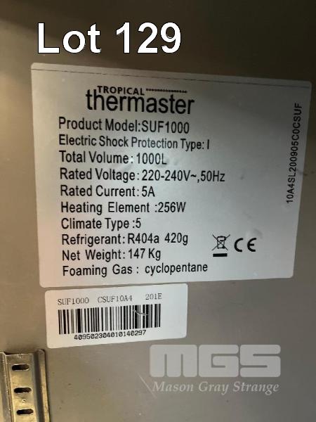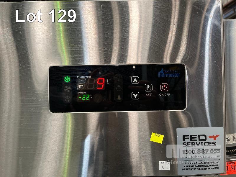 THERMASTER UPRIGHT CHEFS FREEZER, MOD: SUF-1000 1000L CAP 4 HALF DOOR, STAINLESS STEEL CASED, 240V 10 AMP PLUG