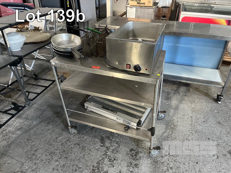 STAINLESS STEEL TOP BENCH, 122 x 76cm & 3 TIER TROLLEY, BAIN MARIE, BUG ZAPPER ETC