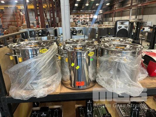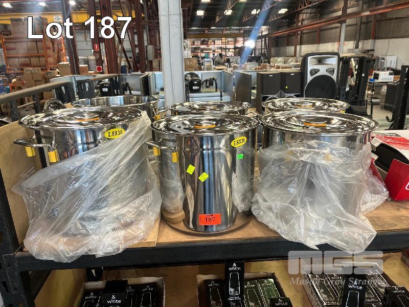 6 x STAINLESS STEEL STOCK POTS, 28 x 30cm