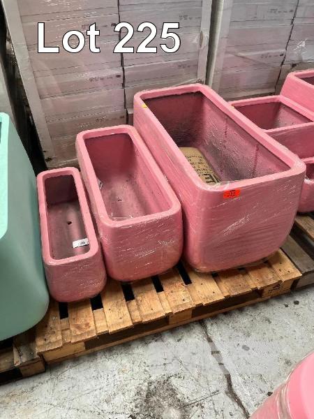 2 X SETS OF 3 CONTEMPORARY PLANTER POTS (NEW) STYLE MONARCH TROUGH COLOUR PINK SIZES 2 @ 970 x 470 x 470mm 2 @ 800 x 340 x 340mm 2 @ 650 x 230 x 240mm RRP $379.99 PER SET