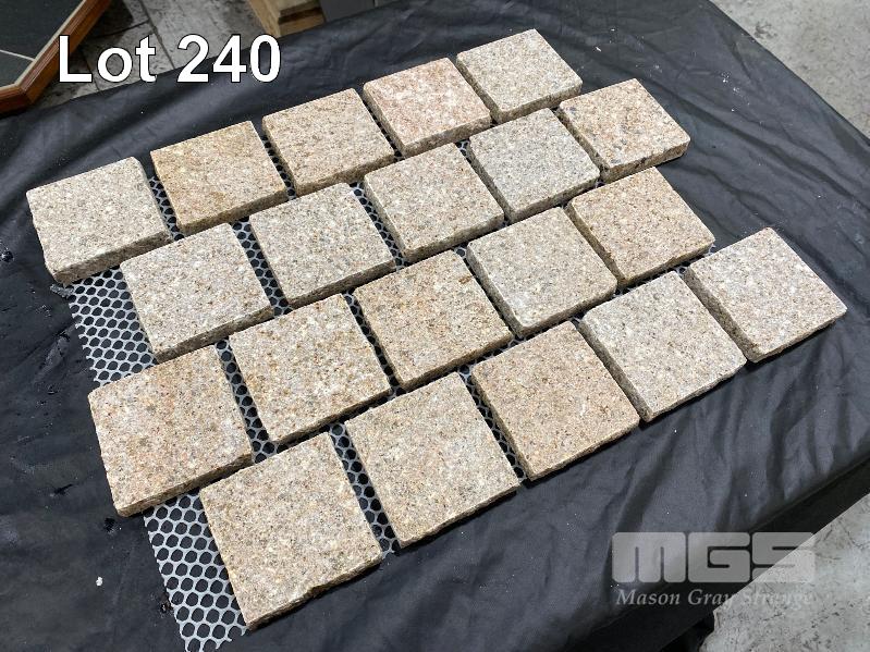 COBBLE STONES, YELLOW GRANITE, 23m2 TOTAL, SHEET SIZE: 540 x 430 x 20mm, STONE SIZE: 100 x 100 x 20mm, PACKAGED IN TIMBER CRATE
