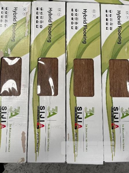 27.6m2 SIJIA HYBRID TIMBER LAMINATE FLOORING COMMERCIAL GRADE, WATER PROOF, SCRATCH PROOF, SUIT HERRINGBONE LAY PATTERN COLOUR: SPOTTED GUM TILE SIZE: 600 x 120 x 6.5mm (24 CARTONS TOTAL)